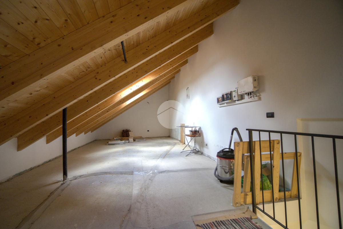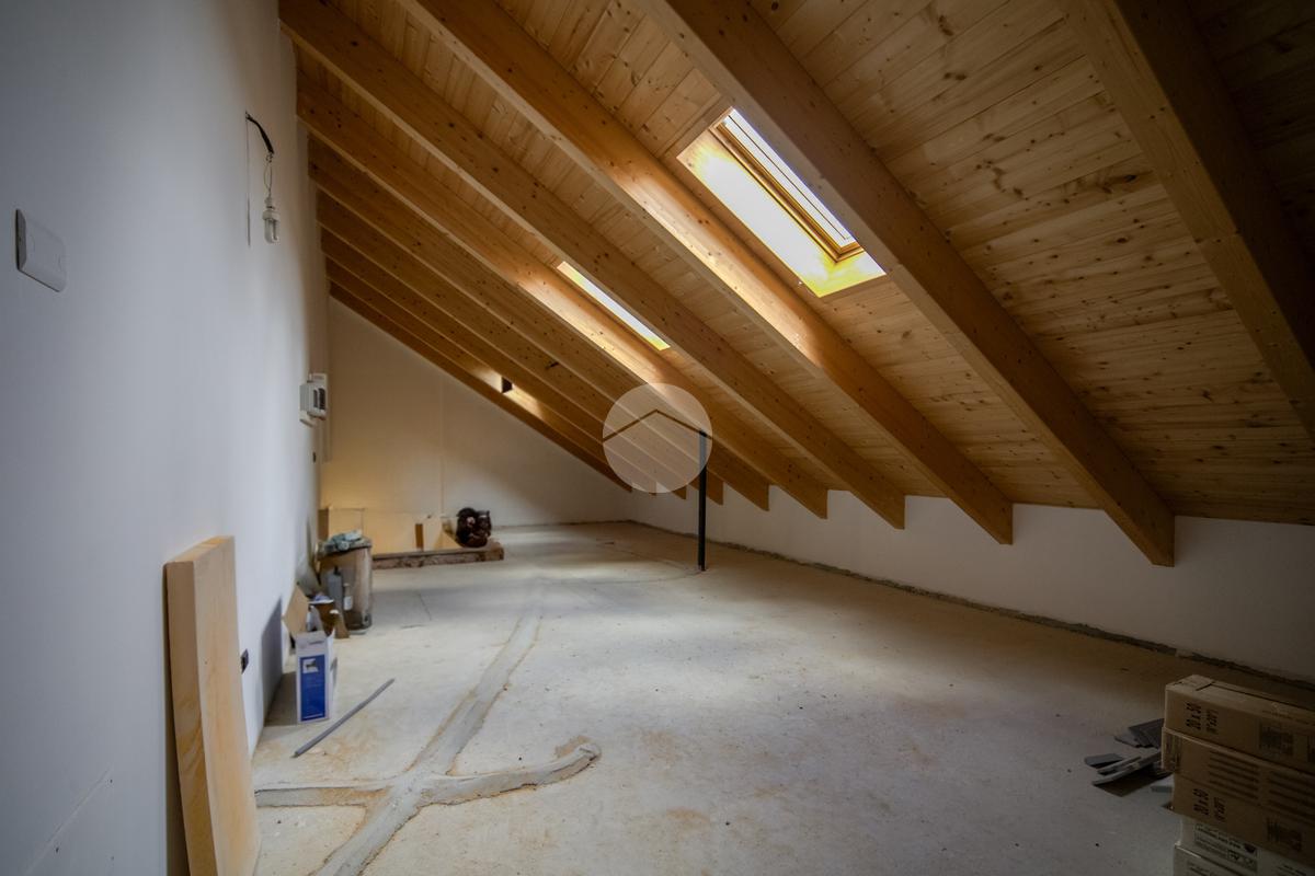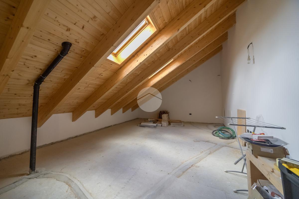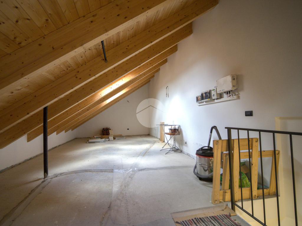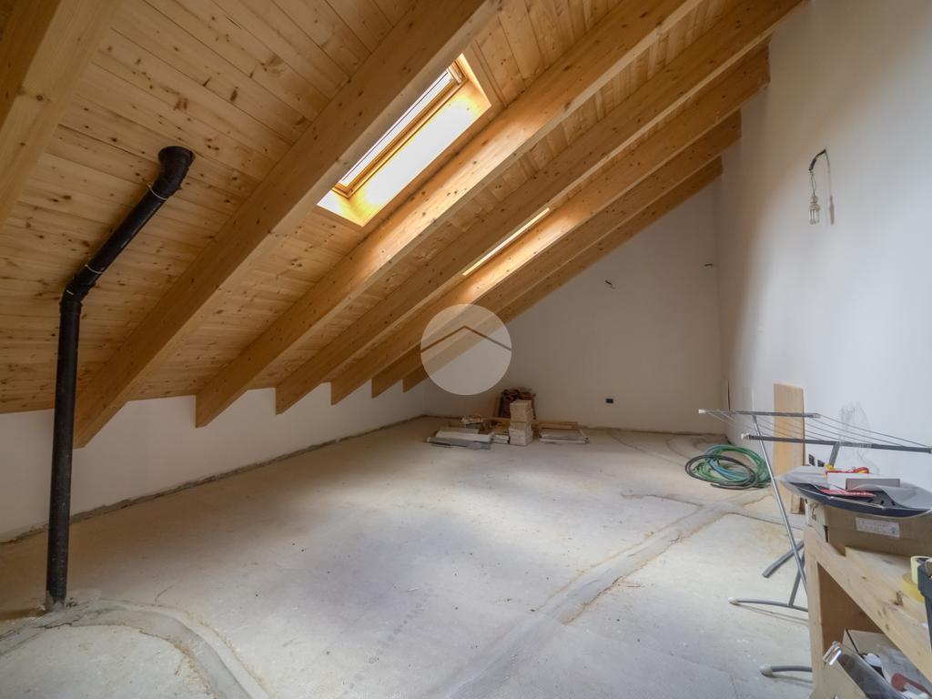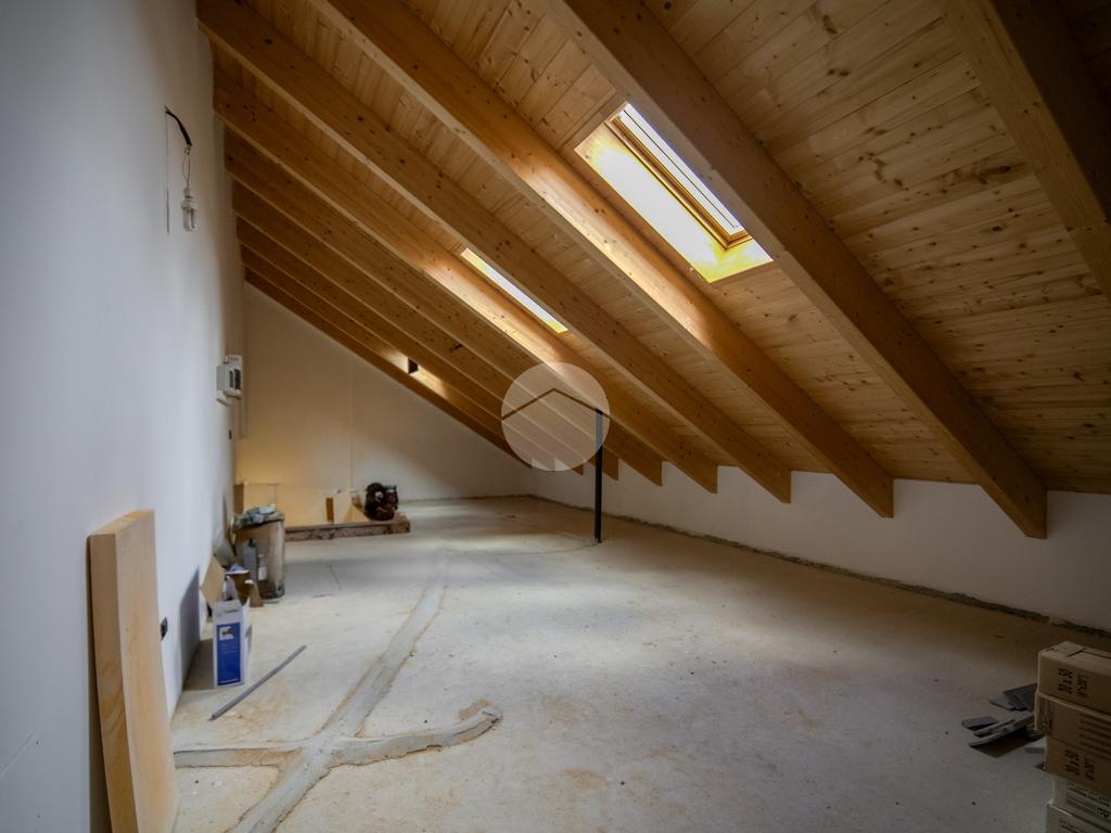 Al piano superiore si sviluppa un ulteriore ambiente open space con travi in legno a vista, oggi utilizzato come locale accessorio, ideale come studio, zona hobby o spazio smart working, facilmente adattabile alle diverse esigenze.